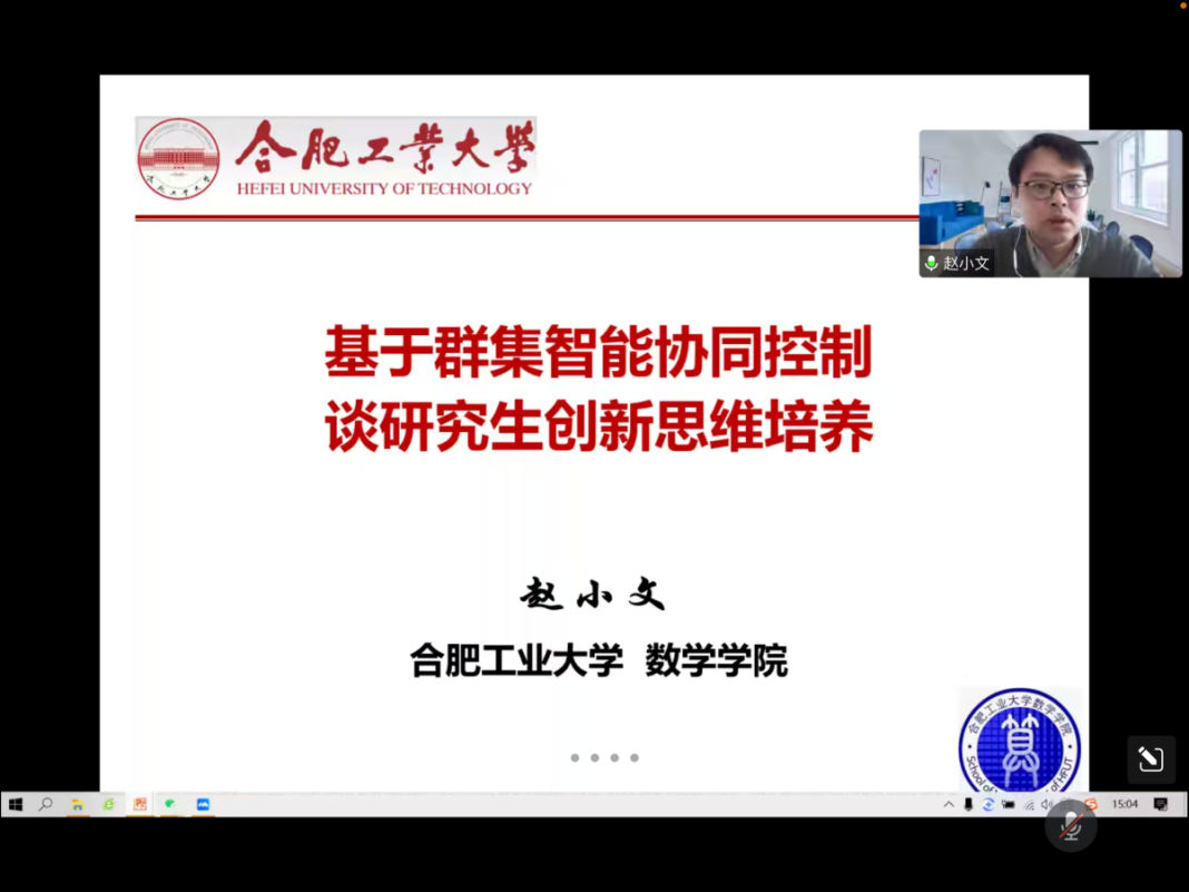 On December 19, 2022, at 2:00 PM, the Academic Exchange Annual Meeting, organized by the School of Mathematics, was successfully conducted in an online conference hall. The theme of the meeting was "Research on Graduate Innovative Thinking Based on Collective Intelligent Collaborative Control," and the keynote speaker was Professor Xiaowen Zhao. Forty percent of the students from the School of Mathematics participated in this academic exchange annual meeting. Professor Xiaowen Zhao delivered an in-depth and accessible lecture on the topic of "Graduate Education Based on Collective Intelligent Collaborative Control." He covered the theoretical foundation of collective intelligent collaborative control, practical experiences in graduate education, and the future development of graduate education. He used real-life examples to illustrate his points and received a warm welcome from the faculty and students in attendance.
