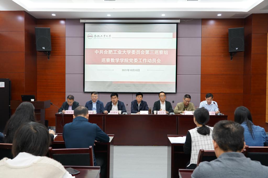 10月10日上午,校党委第三巡察组巡察数学学院党委工作动员会在翡翠湖校区科教楼A座第五会议室召开。校党委常委、副校长季益洪,校党委第三巡察组全体成员、巡察办负责同志,学院全体教职工、离退休教师代表、学生代表参加会议。会议由学院院长朱士信主持。...