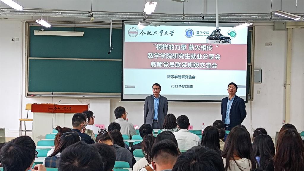 4月28日上午,数学学院于翠7教401室举办“榜样的力量·薪火相传”主题经验分享交流会暨教师党员联系学生班级交流会。学院党委书记范仁庆出席了本次会议,本次交流会由学院党委副书记彭帮国主持,数学学院研究生辅导员及低年级研究生共计120余人参加了分享会...