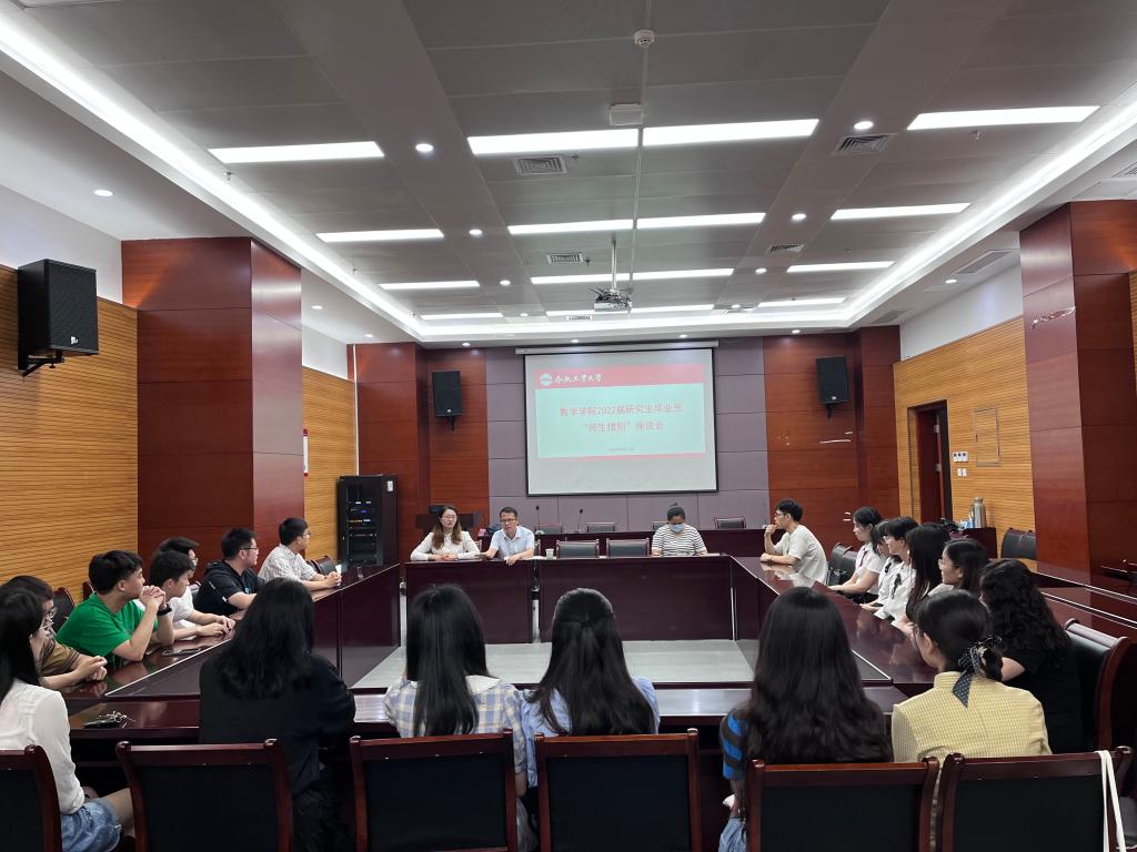 浓浓感恩情深,谆谆嘱托意重。6月1日,数学学院于科教楼A座第五会议室举行2022届毕业班师生惜别座谈会,本次座谈会由数学学院党委书记范仁庆主持,研究生辅导员、教务秘书,研究生毕业班二十余位同学参加了本次活动。座谈会上,同学们分享了研究生三年期间...