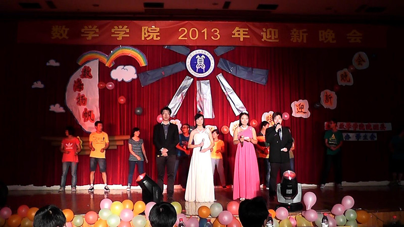 9月23日晚,数学学院2013年迎新晚会在翡翠湖校区综合楼301举行。校学工部、校团委和该院相关负责人同师生们一同观看了演出。 晚会上,数学学院副院长朱晓临老师代表学院用诗词朗诵《沁园春・雪》向2013级新同学表示热...
