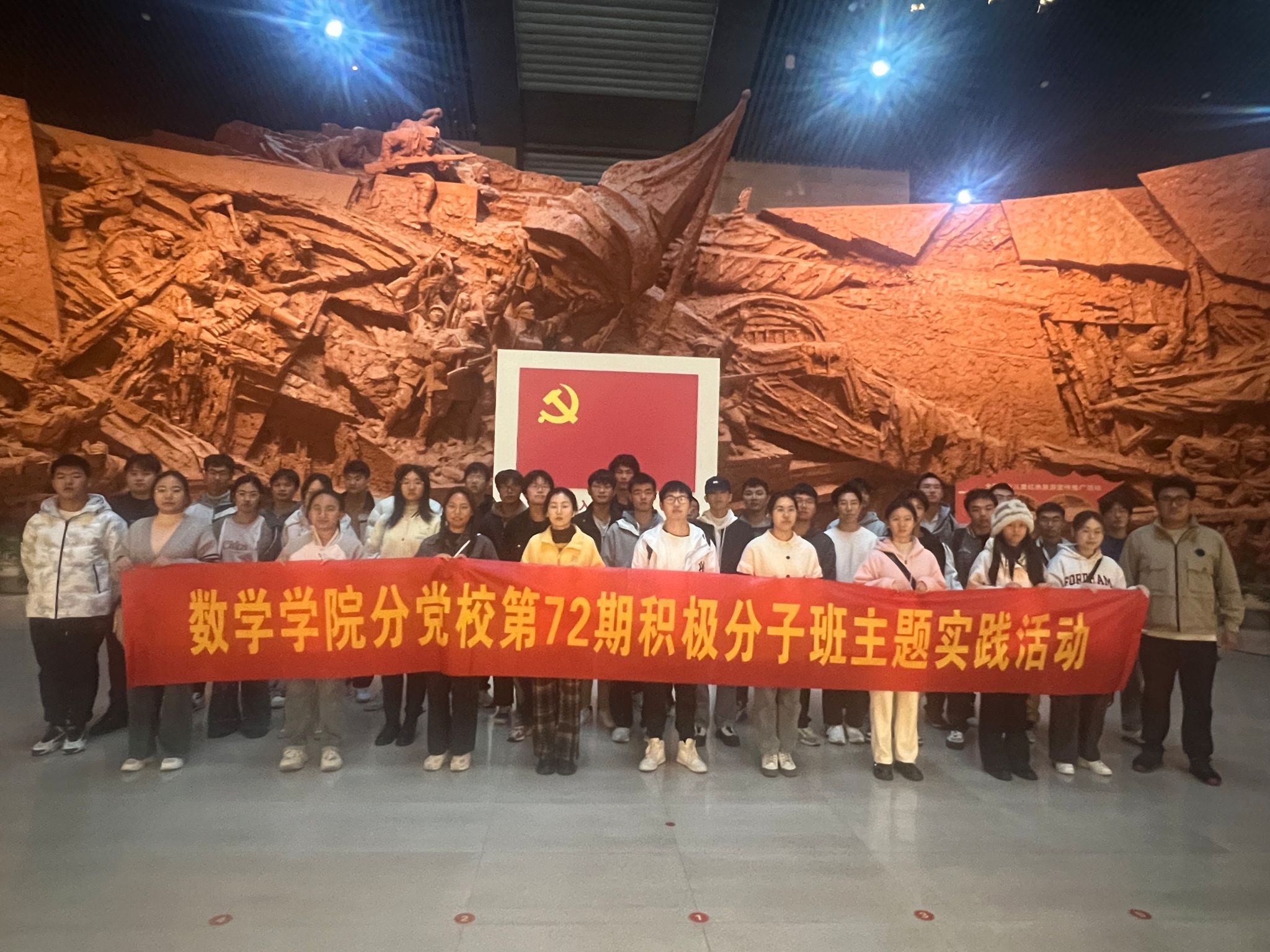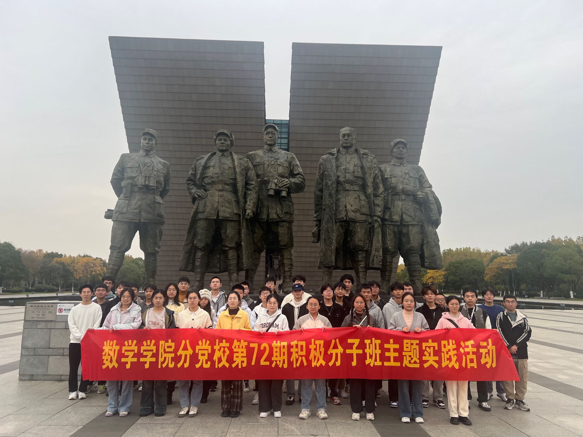 为深入推动党史学习教育走深走实,进一步加强革命传统和爱国主义教育,纪念革命先烈光荣事迹,汲取前行力量,赓续红色血脉,数学学院分党校于11月24日下午组织党校第72期大学生入党积极分子班学员前往渡江战役纪念馆开展主题实践活动。积极分子班班主任和四十余名学员参加此次活动。