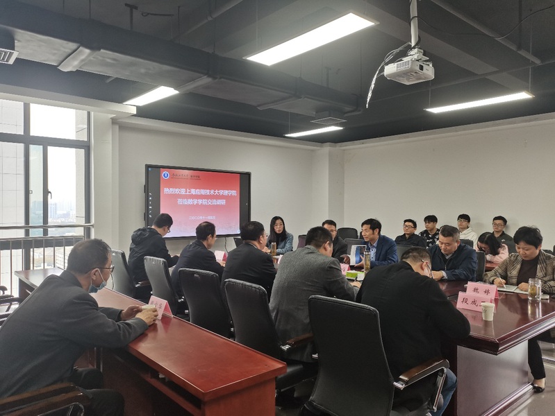 2020年11月5日下午,上海应用技术大学理学院院长李以贵、副院长王凤超一行来数学学院调研交流。学院领导班子、博士生等参加了座谈会。