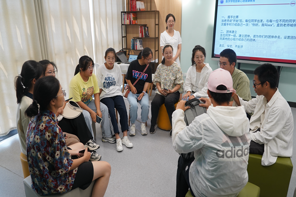 为全面提升朋辈心理辅导队伍的专业素养,提高助人意识和能力,增强班干部的“危机预警干预”技能,10月1日,数学学院在学生社区2号组织开展“朋辈有我,携手同心”朋辈心理健康教育活动,本次活动由我院大学生发展辅导中心主任韩玉洁主讲,数学学院2022级新生班长、心理委员、心理气象员等50余位同学参加了本次活动。
