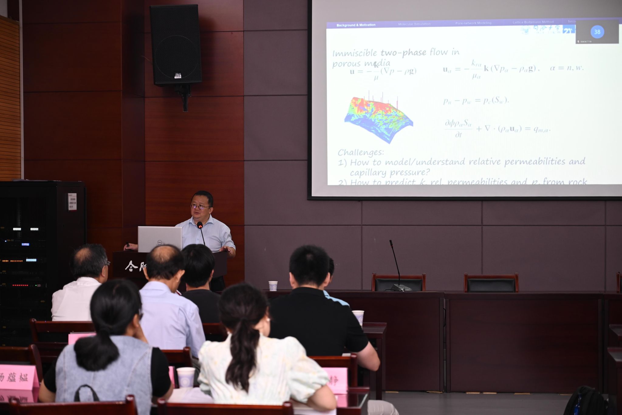 学术报告会上,同济大学孙树瑜教授、合肥工业大学李道伦教授、中国地质大学潘焕泉教授、中国石油大学蔡建超教授、宁波东方理工大学陈云天教授等专家先后围绕数值模拟、智能控制、AI大模型与数据处理等多个前沿方向,带来了“数字岩心流动模型的高效鲁棒算法”、“油气田智能生产优化技术”等14场精彩报告,引发了现场热烈讨论与深入交流。