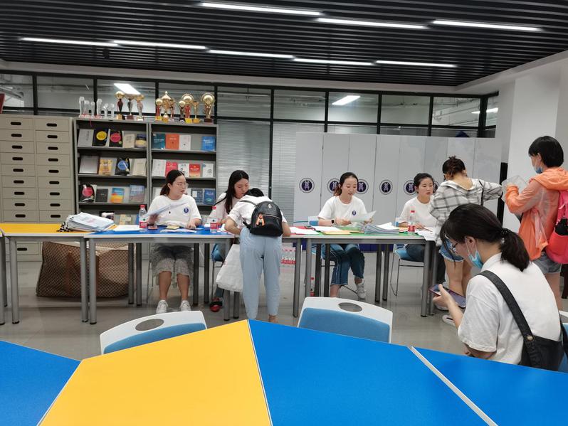 9月3日为数学学院新生报道的日子,学校北门迎新接待处早上7点,研究生党支部党员与研会成员已经做好了迎接的充足准备。新生经过校门的防疫通道后,有接待员等待在防疫签到点,有师兄师姐帮忙拉行李并引领送宿舍,有研会成员引导办理入学手续。上有学校迎新工作的整体部署,下有数学学院迎新方案的配合,数学学院迎新工作高效、忙碌、热烈的顺利开展。