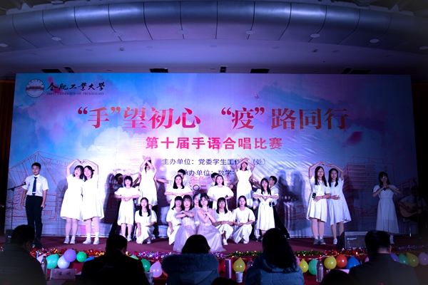 为弘扬“团结聚力,众志成城”的抗‘疫’精神,传播手语文化,传递人间温情,合肥工业大学第十届“‘手’望初心,‘疫’路同行”手语合唱比赛决赛于12月20日在翡翠湖校区综合楼301举行。比赛邀请了安徽建筑大学心理学副教授、安徽省高校心理健康教育教学工作委员会副主任委员、安徽省政府心理应急救援总队特聘专家郑敏,合肥特殊教育中心政教处副主任、听障部副部长邓大柱,安徽农业大学心理中心主任孙蕾,校党委学生工作部副部长崔健,校心理健康教育与咨询中心主任李志明担任评委,部分学院的相关负责同志、辅导员老师担任嘉宾,比赛吸引了学校300余名同学参加。