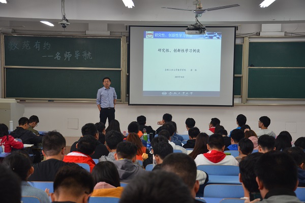 此次报告会邀请到学院教学名师唐烁教授以《研究性、创新性学习例谈》为题,结合数学专业本科阶段课程内容,通过“中值等式”和“函数不等式证明方法”两个具体例子及其引申与推广,向同学们讲述了如何对已知的结论提出新的看法,对已有的命题做出合乎逻辑的推广,进而自己提出新的命题并给出证明。同时,唐烁老师还强调“数学不仅仅是一门系统性的演绎科学,从创造性的观点及过程来看,数学也可以是一门试验性的归纳科学,希望同学们在学习的同时要善于提出问题、发现问题,并对这些问题进行研究,把某些实际问题通过数学建模转化成数学问题,进而求出它的一个解答。