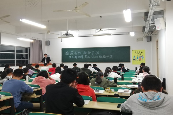 为了充分发挥学生党员的榜样示范作用和朋辈教育优势,勉励新生不忘初心,勇往直前,10月20日晚,数学学院“数苑有约——学长导航”党支部朋辈引领交流会分专场在翡翠湖校区十二教204、402、403举行。