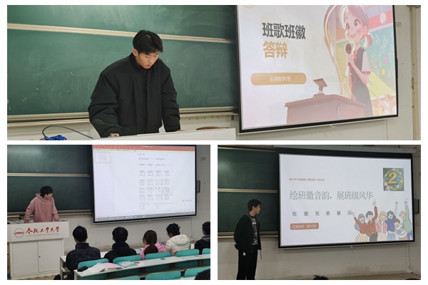 本次大赛中,各班级充分发挥创意,展现独特风采。应数24-1班的班徽以船帆钢笔头为主体,融合数学元素,寓意笔耕不辍,象征探索与团结,其班歌传达出积极情感与壮志豪情。应数24-2班将数学与航海元素结合,船帆、波浪体现探索精神,班歌满含对数学的热爱与执着。信计24-1班班徽中心的鲲富有深意,展现班级潜力,班歌体现了班级成员在困境中的相互支持。信计24-2班以金色“2”为主体,周围花环和数学符号象征班级活力与合作,班歌激励同学们保持乐观心态。统计24-1班班徽融合统计图表与数学符号,彰显专业特性,班歌洋溢着青春活力与进取精神。