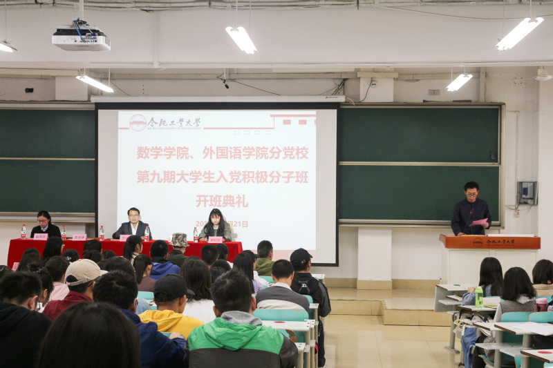 10月21日下午,数学学院、外国语学院入党积极分子培训班开班典礼在翡翠湖校区一教101举行。数学学院党委书记范仁庆,外国语学院党委副书记、纪委书记苏光靖,数学学院党委副书记、纪委书记魏婷,两所学院分党校有关老师,以及百余名入党积极分子参加典礼,典礼由魏婷主持。